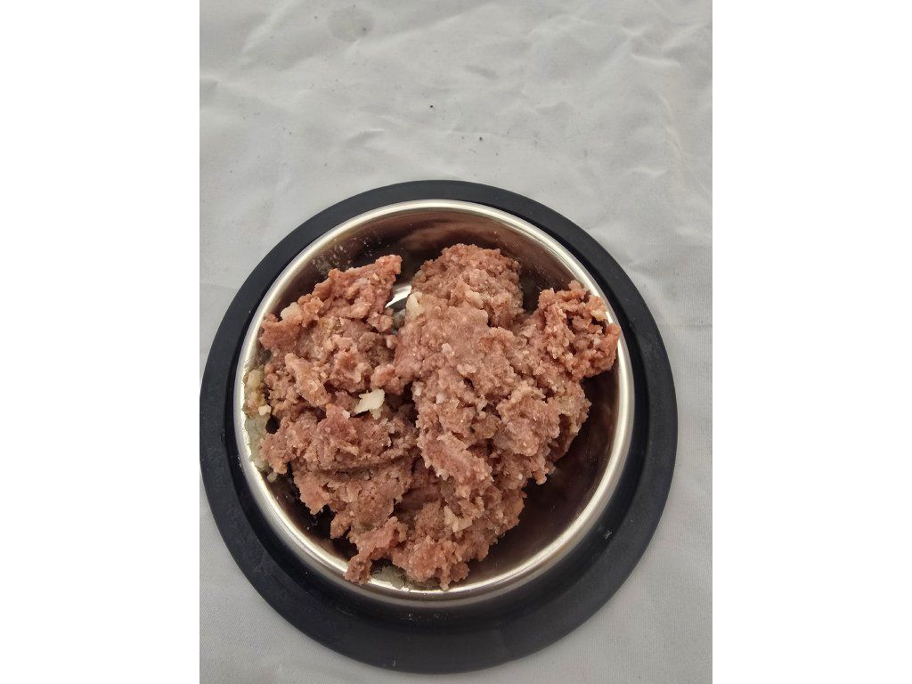Složení: 45 % jehněčí maso, 53 % vepřové maso a droby, mrkev, dýně, lněné semínko, pivovarské kvasnice, vápník, bramborový škrob.
